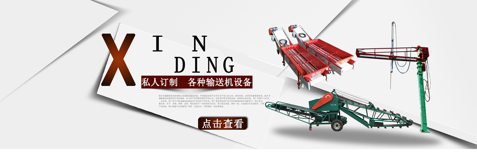 衡水市鑫鼎輸送機(jī)械有限公司是糧食輸送機(jī)械、平板輸送機(jī)等產(chǎn)品專業(yè)生產(chǎn)加工的公司,擁有完整、科學(xué)的質(zhì)量管理體系。衡水市鑫鼎輸送機(jī)械有限公司的誠信、實(shí)力和產(chǎn)品質(zhì)量獲得業(yè)界的認(rèn)可。歡迎各界朋友蒞臨參觀、指導(dǎo)和業(yè)務(wù)洽談。 我廠創(chuàng)建于1980年,多年來,我廠致力于糧食輸送機(jī)械系列產(chǎn)品的生產(chǎn)和開發(fā)。我廠具有優(yōu)良的產(chǎn)品開發(fā)和雄厚的技術(shù)創(chuàng)新實(shí)力,使之成為集科研、生產(chǎn)、檢測、銷售、安裝、售后服務(wù)于一體的綜合性企業(yè),我們追求卓越,崇尚一流,引進(jìn)國內(nèi)外先進(jìn)技術(shù),不斷產(chǎn)品結(jié)構(gòu),精心鑄造產(chǎn)品質(zhì)量我廠堅持“以誠為本,優(yōu)質(zhì)服務(wù)”的經(jīng)營理念。。積極拓展市場,贏得了廣大客戶的信賴和一致好評。產(chǎn)品暢銷山西、山東、遼寧、黑龍江、吉林、北京、天津、內(nèi)蒙古等28個省、市、自治區(qū)。